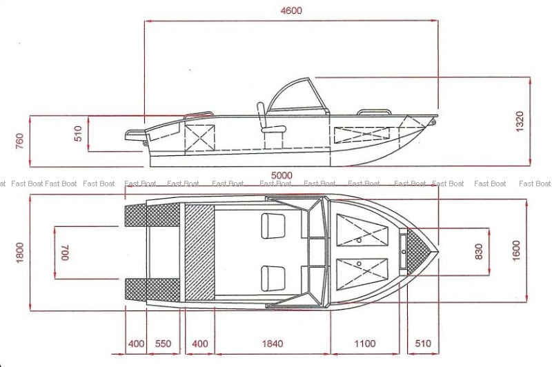 - Корпус из алюминия -АМГ-5 (днищевая 3 мм, борта 2 мм)