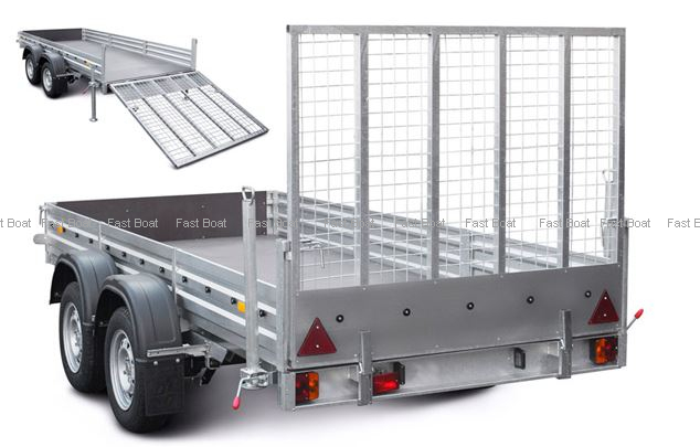 Стальная оцинкованная аппарель для заезда (съезда) мотоциклов, снегоходов, квадрациклов (atv), садовых тракторов (райдеров) и другой техники. Она оборудована креплениями тента и может эксплуатироваться вместе с каркасом и тентом высотой не менее 1500 мм от пола платформы. Грузоподъёмность* — 500 кг. Масса — 40 кг.